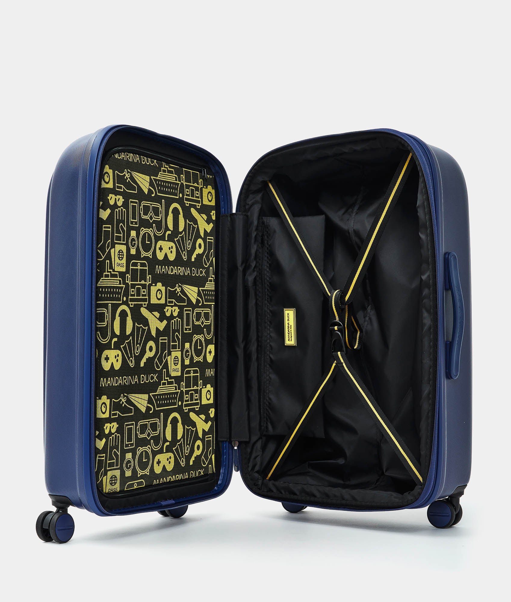 In a world of luggage with strict shapes and formal color palettes, Mandarina Duck stands out with LOGODUCK, a polycarbonate line dedicated to travel, featuring soft and rounded shapes and a compact volume. The leitmotif is color in all its shades, signaling a new, more fluid and informal way of traveling. Mandarina Duck aims to offer authentic and genuine travel experiences with its products, moving away from traditional tourist habits and embracing a functional, comfortable, and lightweight travel experience.