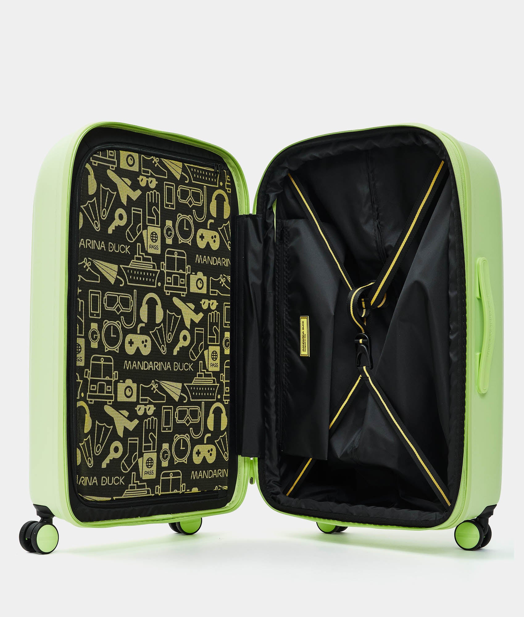 In a world of luggage with strict shapes and formal color palettes, Mandarina Duck stands out with LOGODUCK, a polycarbonate line dedicated to travel, featuring soft and rounded shapes and a compact volume. The leitmotif is color in all its shades, signaling a new, more fluid and informal way of traveling. Mandarina Duck aims to offer authentic and genuine travel experiences with its products, moving away from traditional tourist habits and embracing a functional, comfortable, and lightweight travel experience.