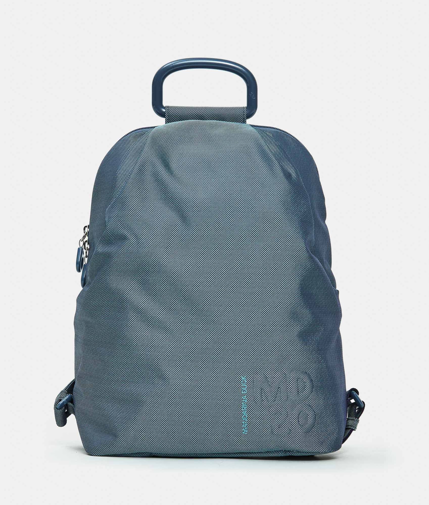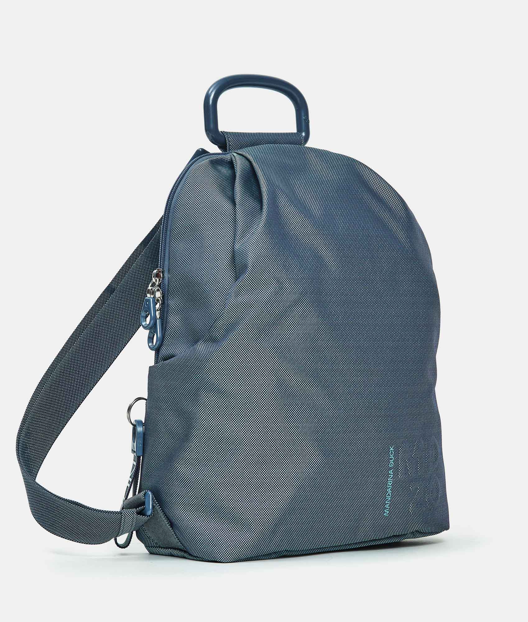 Backpack with handle and side zip pockets in fabric. Personalized details and adjustable jacquard straps.