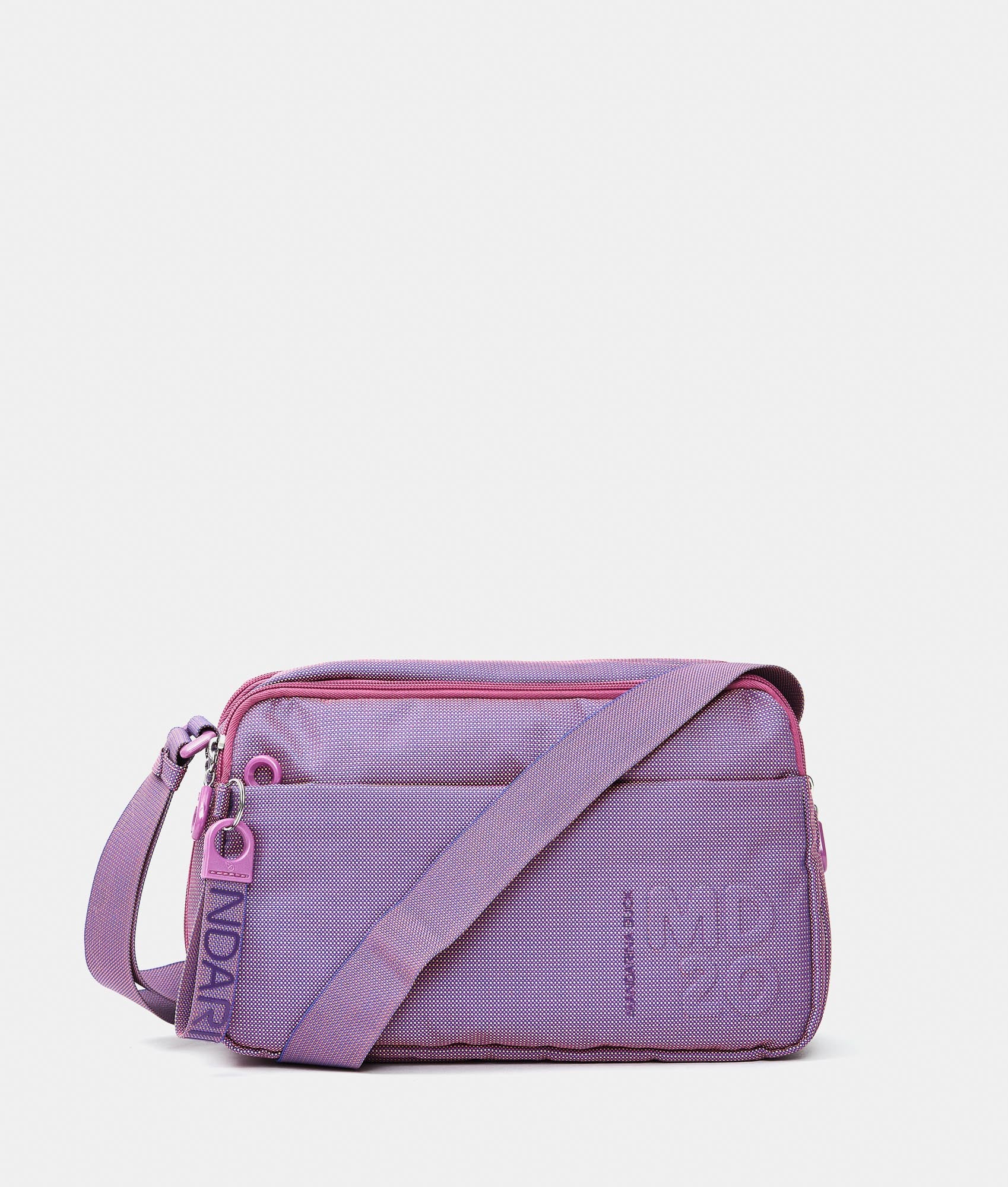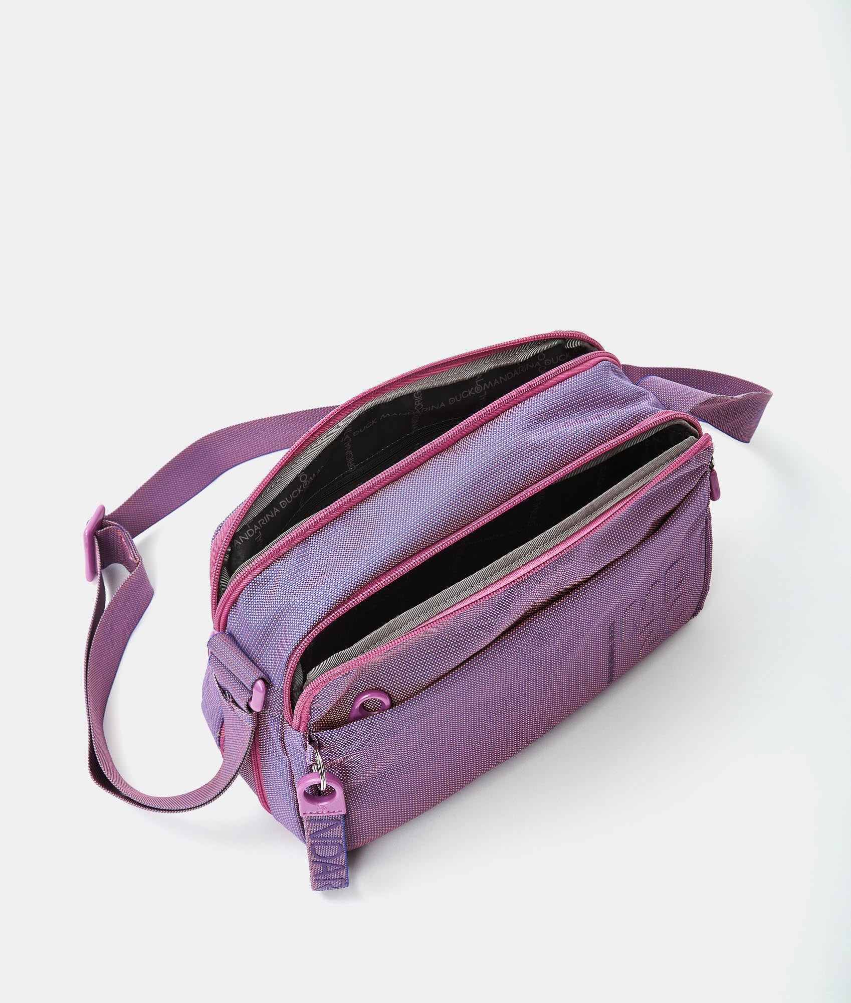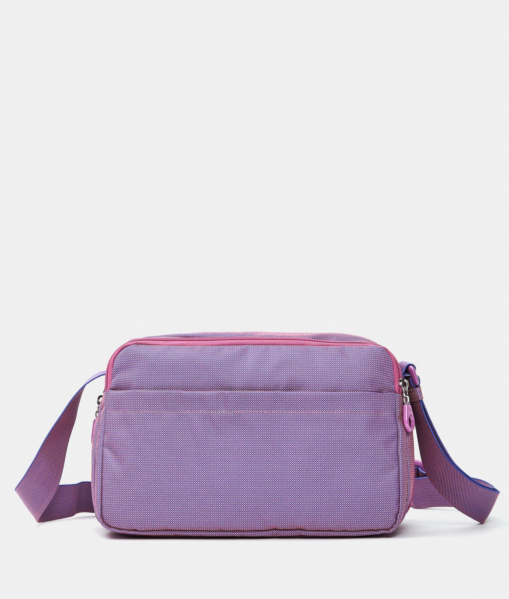 Medium expandable crossbody bag with bottom zip and front pocket in fabric. Dual carry option, smart pockets, personalized details and adjustable jacquard shoulder strap.