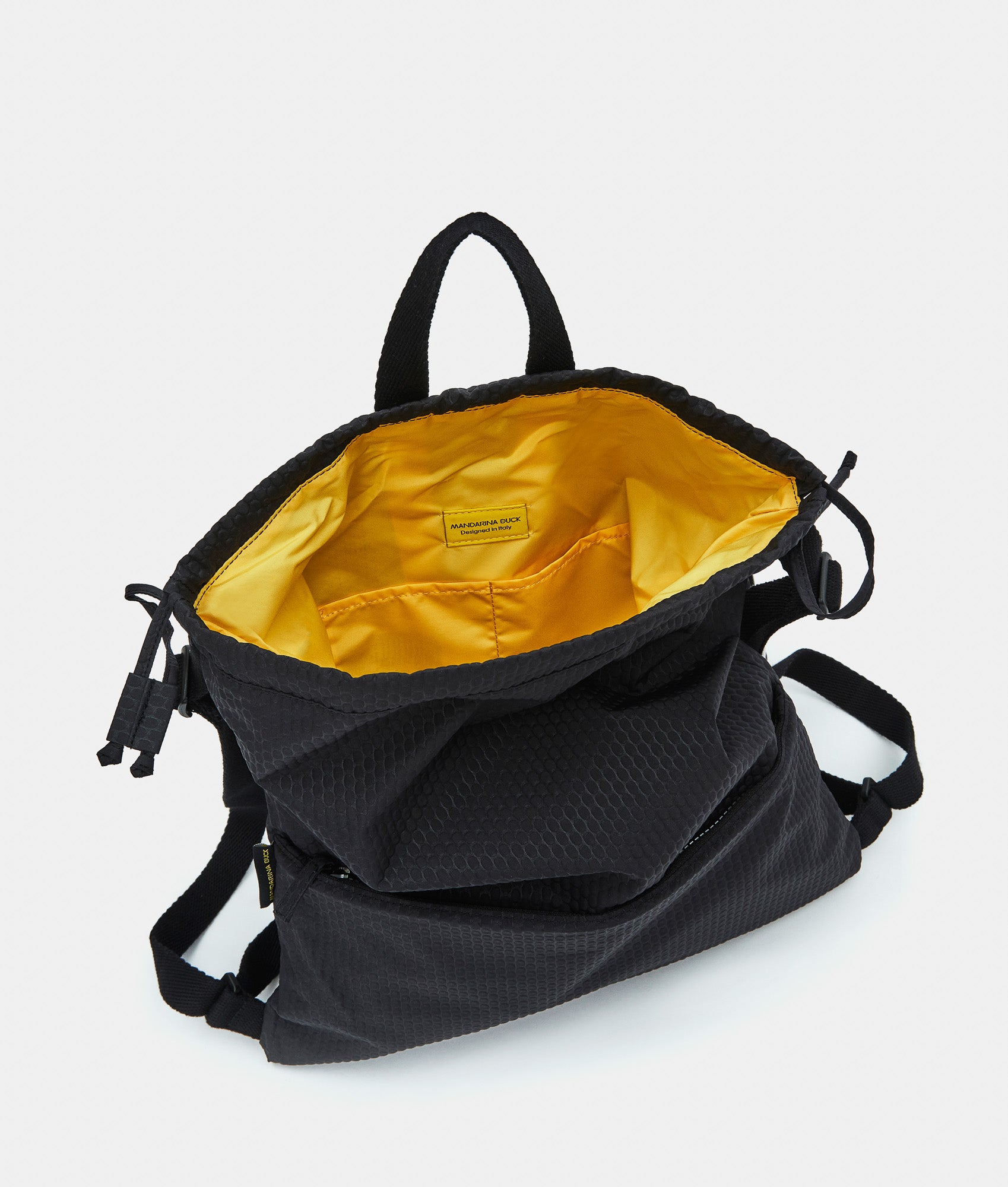 Mandarina Duck eco-friendly philosophy, part of the ECODUCK TM project, continues to support sustainability, combining design and innovation in a collection aimed at those seeking a more conscious and responsible lifestyle.