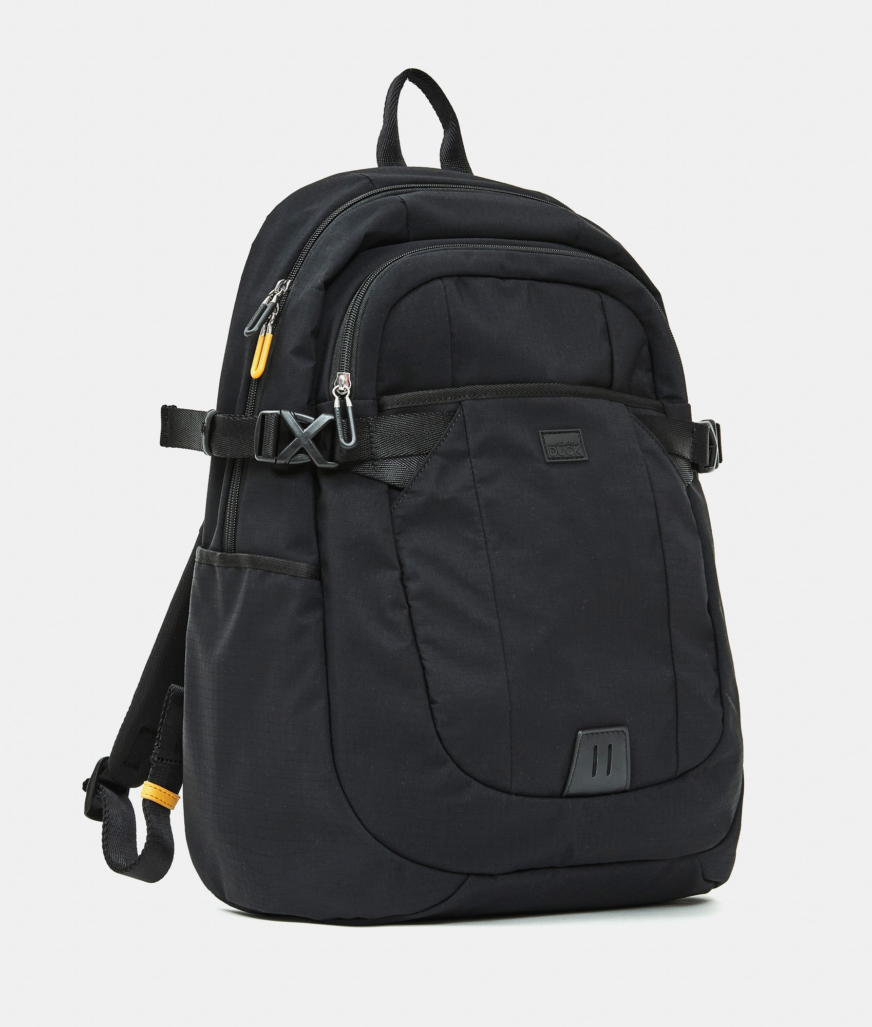 15.6'' Laptotp Backpack with Padded Back and Shoulder Straps, with front zip pocket in fabric. Personalized details, external smart pockets, and adjustable jacquard shoulder straps.